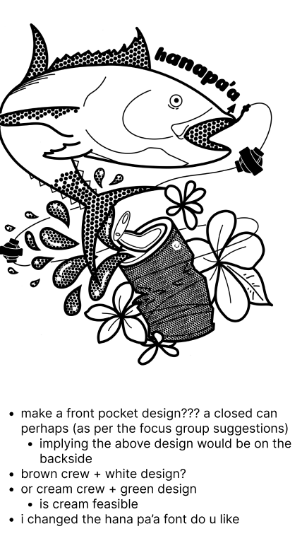 This semester I made a crewneck design that centers around the social good theme “Trash to Treasure” with reference to the “Vintage Revival” design theme. I titled my design “Reely Fresh Catch,” which made the most sense because the focal point of my design is a fish.