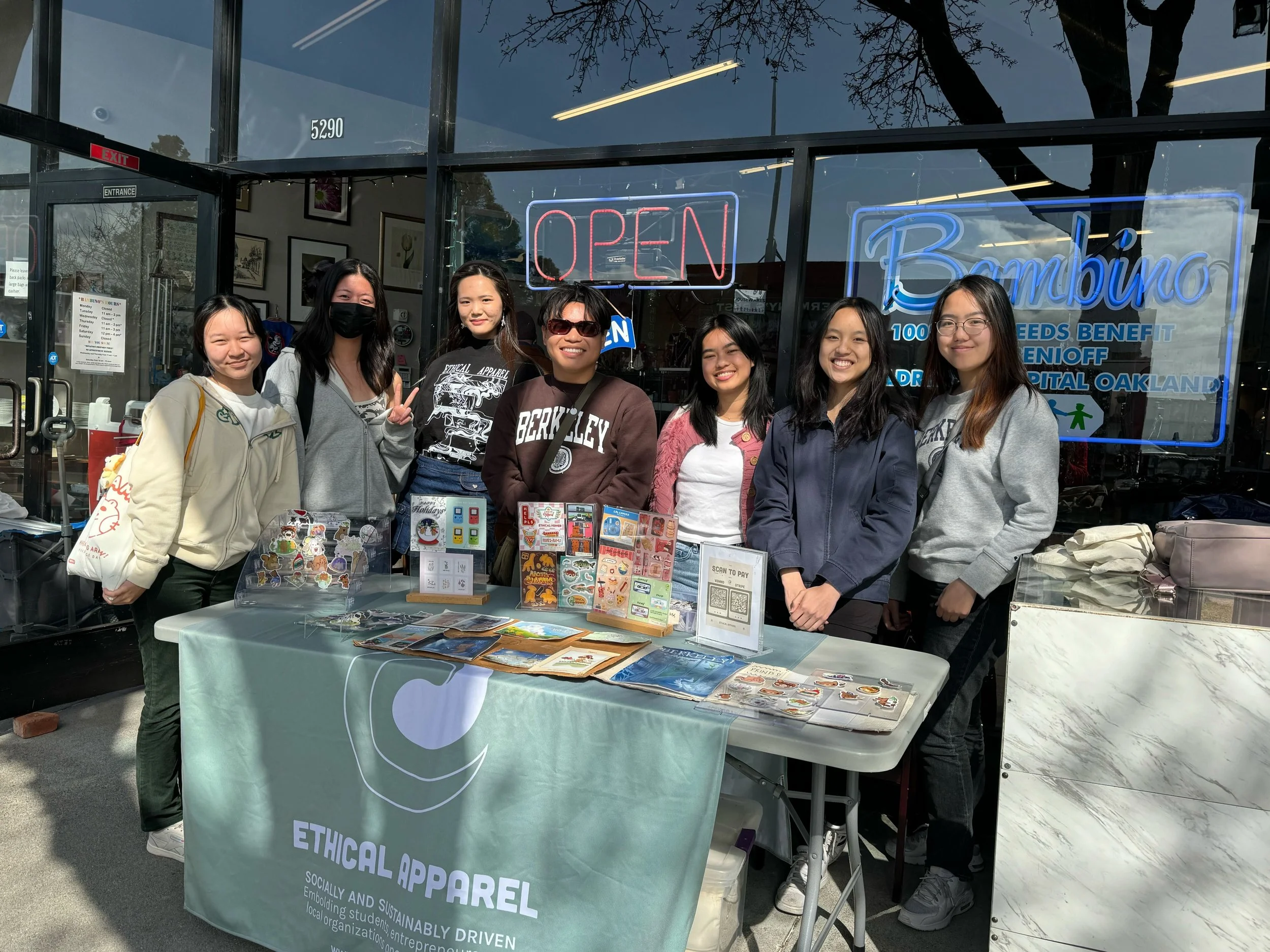 In collaboration with our semester partner, EthiCAL held a pop-up on-site at Bambino. Our members represented our social enterprise over the weekend and tabled a selection of our products. We had the opportunity to display our products, draw new audiences to Bambino Thrift and to EthiCAL Apparel, and spend a day with the volunteers of Bambino on beautiful College Avenue.